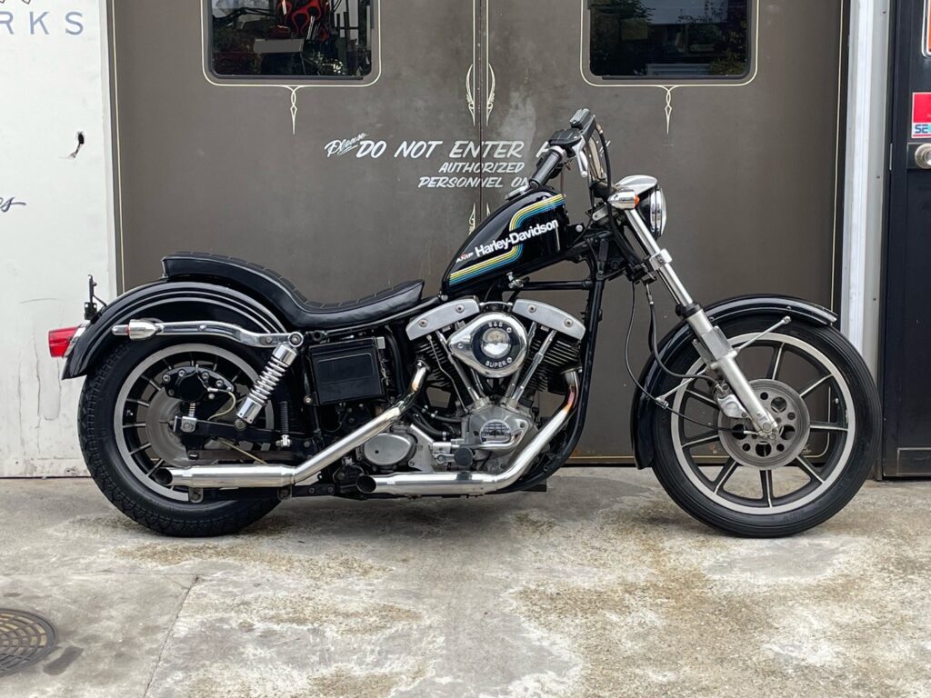 79年式 ショベルヘッド スーパーグライド スポーツスタータンク等でサラッとカスタムフロントフォーク、リヤキャリパー、マスター、クラッチ廻り オーバーホール済み(以下新品パーツ)ステムベアリング、ダイナコイル、プラグコード、バッテリー、オルタネーターコイル、オイルライン一式、フューエルライン、ガスコック、等々輸入新規3年車検